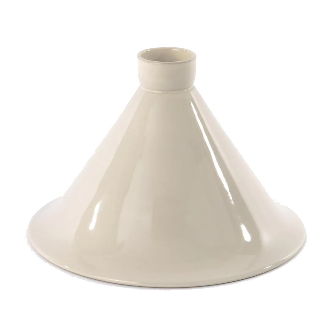 The traditional conical lid allows steam to condense on the walls of the lid and escape downwards, resulting in a juicy dish
