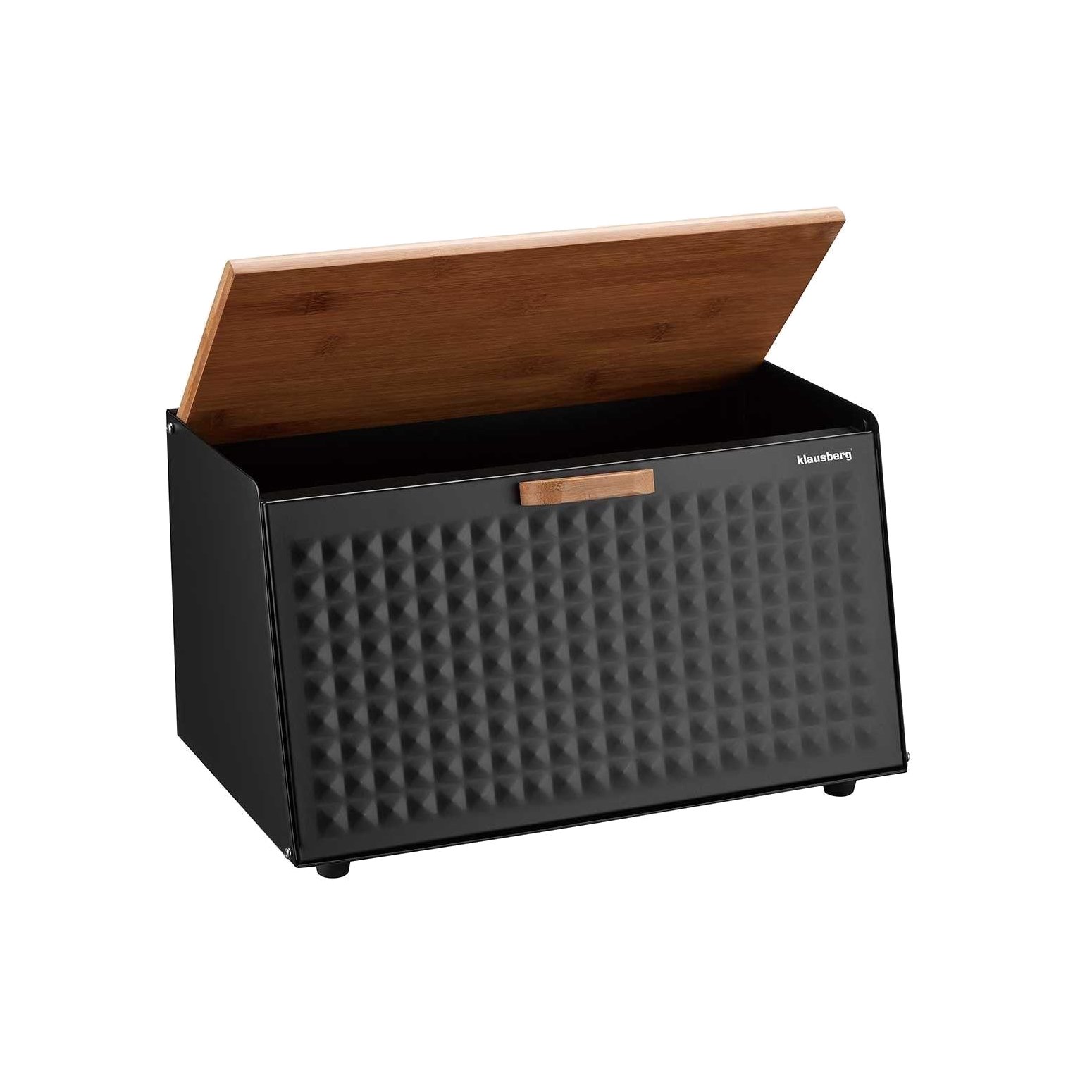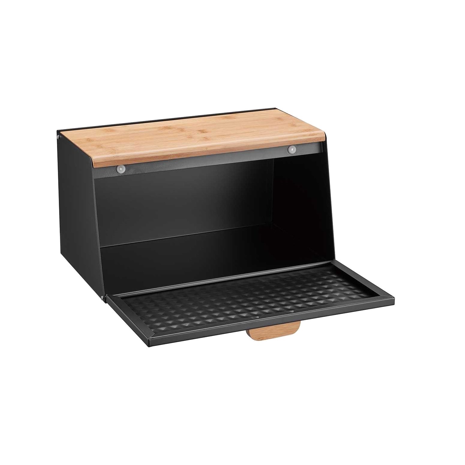 - The top lid is made of light wood (alder, beech type), the front lid is made of steel with a wooden handle